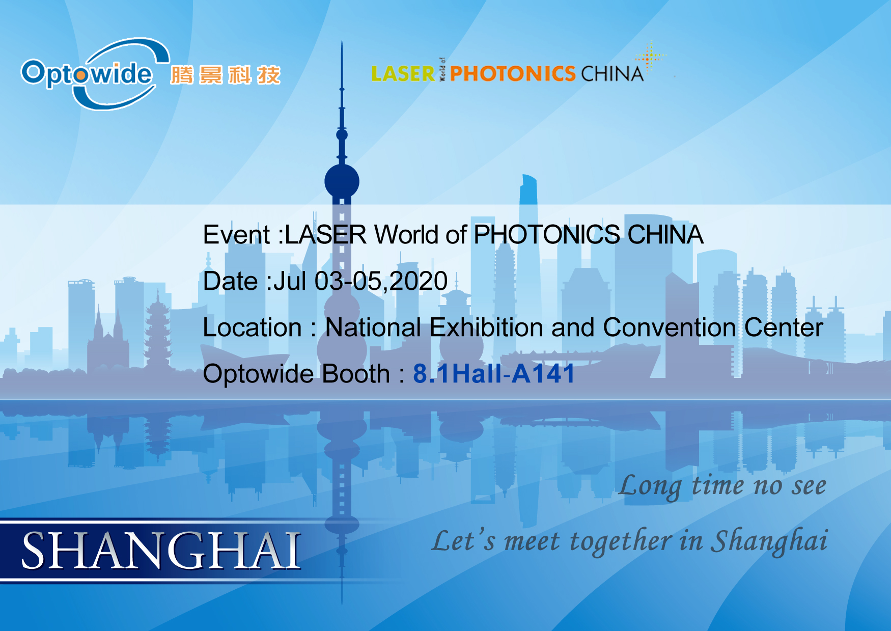 Optowide will attend LASER World of PHOTONICS CHINA 2020. Optowide Booth:8.1Hall-A141 Date:Jul 03-05, 2020. locations:National Exhibition and Convention Center, Shanghai, China